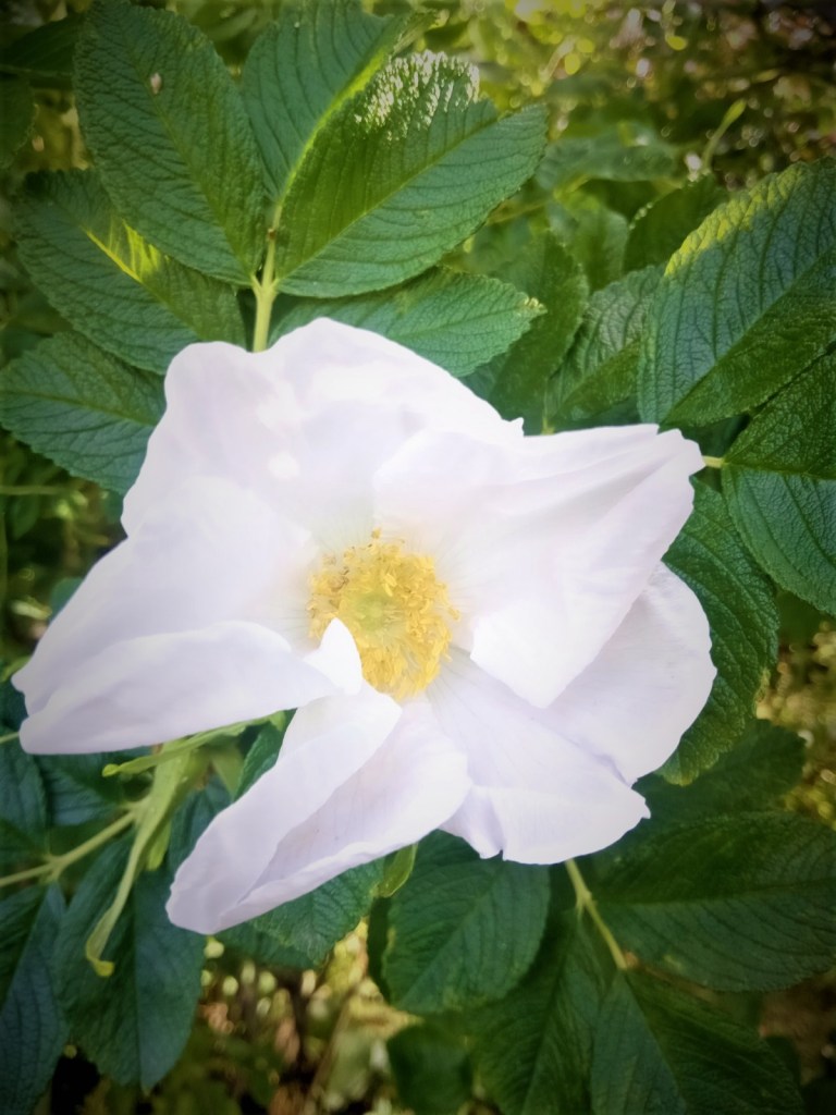 One white rose was blown open so that her petals were just ready to be carried away by the wind, so I reached out asking if these petals would like to come dancing with me and they fell into my hand. I brought them in my coat pocket to my friend’s summer solstice dance that evening and scattered them on her altar among the twinkle lights and yellow flowers.